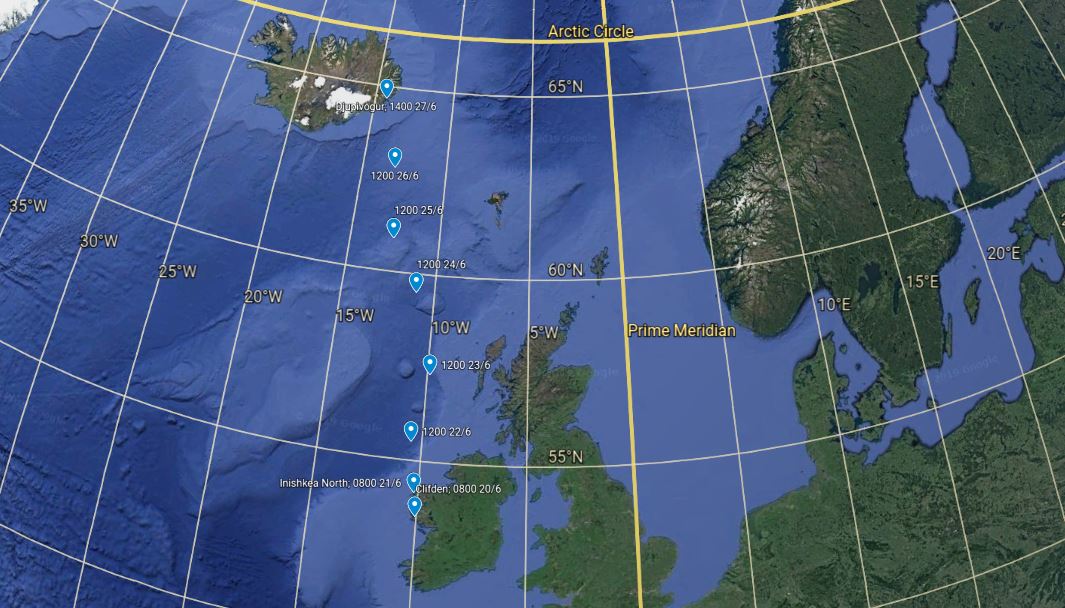 In which we leave Ireland astern, heading north towards the Faroe Islands and ultimately Iceland. The contrast between a cruiser and a racer’s mindset is brought into sharp focus, fishing is attempted, helio-geometric observations are enjoyed, and darkness is left in our wake.