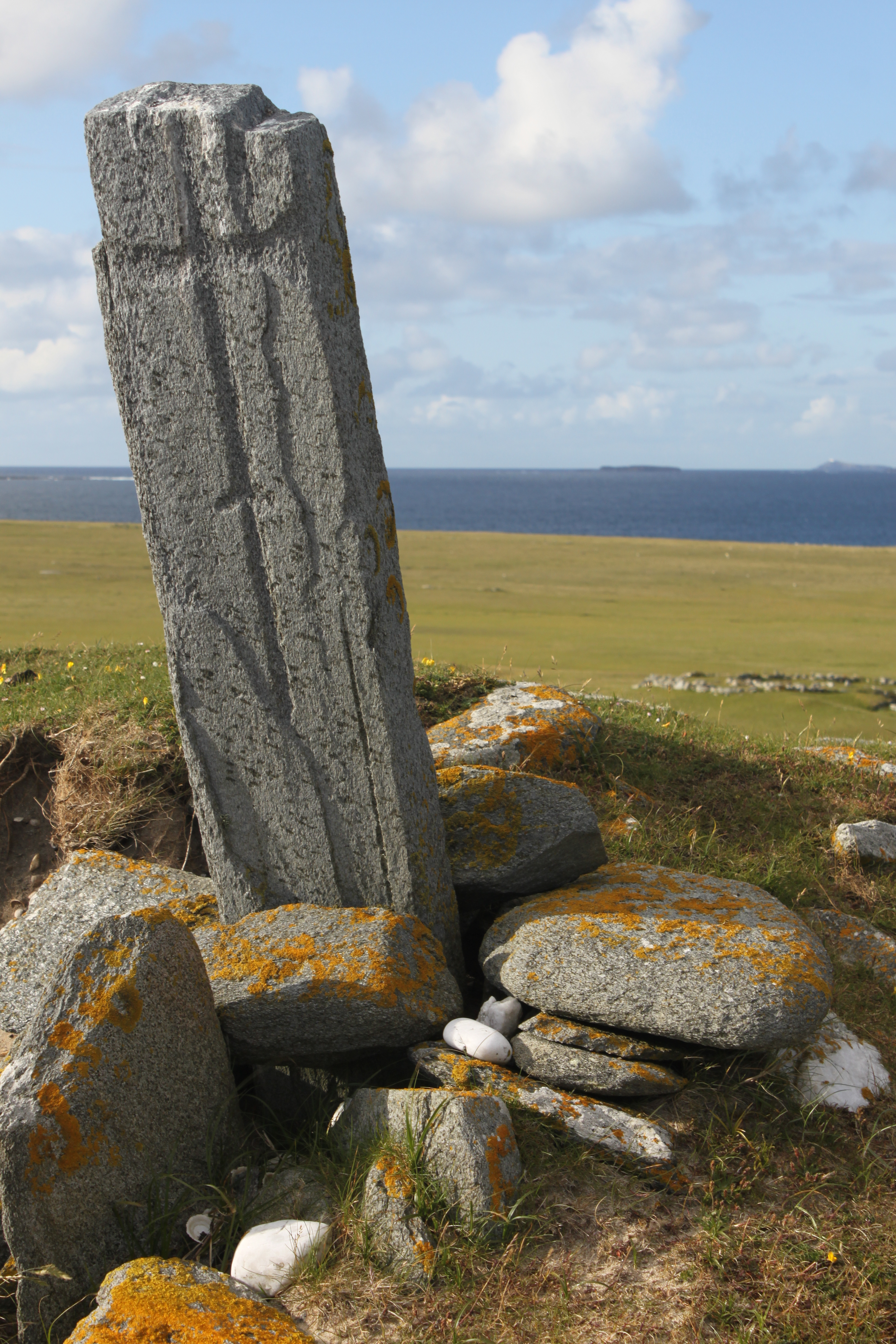 Hove to under main alone, Nick catches dinner off the Inishkea South rocks around 1700. Four mackerel on one drop, the curse is lifted. Or is it? “Purely by coincidence”, Hue is asleep throughout the provisioning, and can barely believe her eyes when confronted by the omega-rich morsels. We carry on to anchor under sail, as Nick and I uncertainly debate the willingness of a Buddhist hermit to eat fish. If ignorance is bliss, we could be reaching Nirvana here. At least we can assume the hermit will be too nice to be outwardly upset by our oily offerings. We row ashore to a low-lying island oozing history, and are greeted by a flock of sheep streaming out from amongst old stone walls and barren potato mounds. The hermit wanders down to greet us, looking disappointingly un-hermitlike with his clean clothes and freshly shaved face. At least his feet are bare. The hermit is a good friend of Nick’s, having welcomed him ashore on numerous occasions throughout Nicks’s northern wanderings. He recently spent three years in silent meditation on the island, his buddhist vow of silence only broken by his Irish hospitality towards wayward sailors. I chuckle slightly at the thought of the silence vow being broken to communicate with a deaf man; every image I have of the Buddha indicates he enjoyed a good joke.