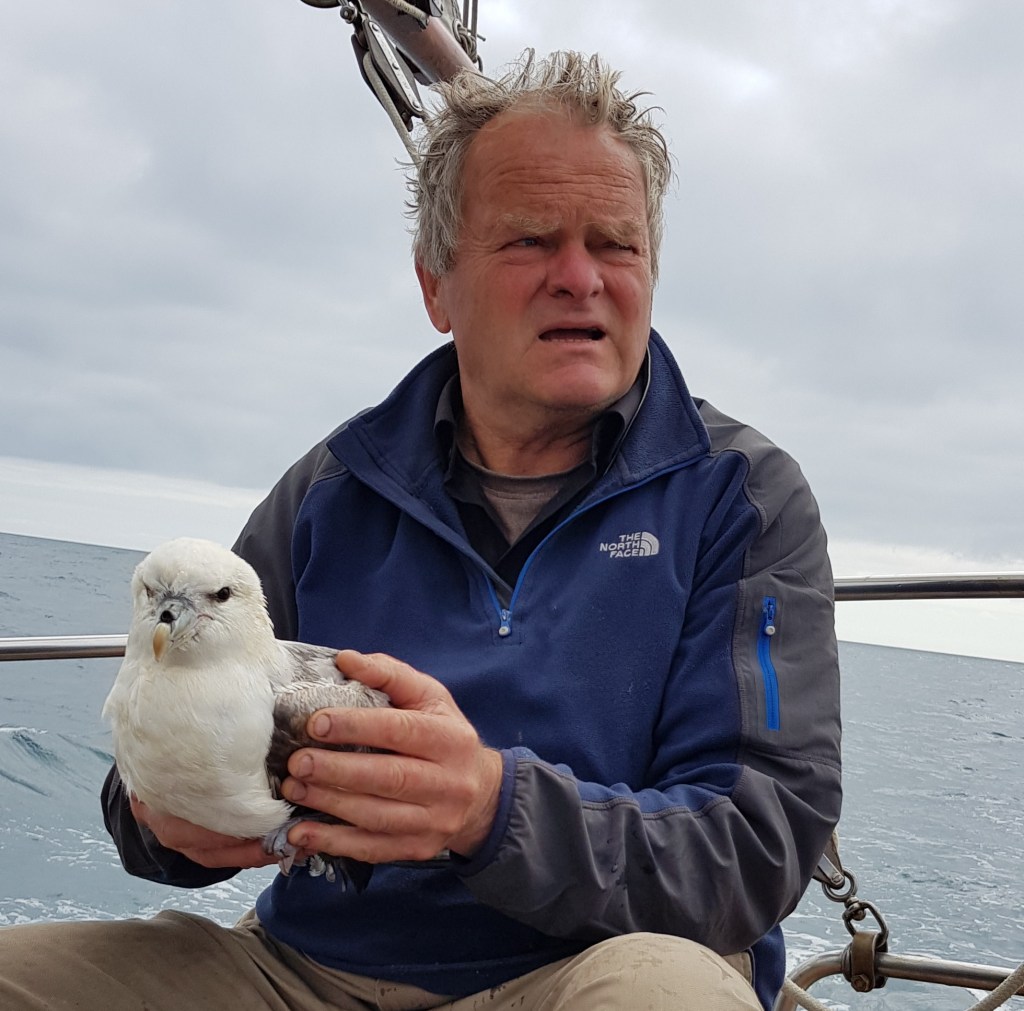 I stumble topside from my time-travel nap, to find Hue wrestling with a reel and shrieking with excitement. “I’ve got a fiiish!” I round Teddy up into the wind, while watching the battle play out behind me. Whatever it is, it’s big, really putting Hue through her paces. A fin breaks the surface at the end of the taut nylon. A long slender fin, with an odd forty-five degree kink in it. A fin with feathers? “Shit. I’ve got a bird” The curse runs strong; a Fulmar has foul-hooked itself on one of Hue’s lures, brought to close to the surface due to Teddy’s blistering pace. I help Hue reel the drowning bird in as quickly as possible. It takes a while to untangle him from the line and unhook his webbed feet. We let him rest on the foredeck for a while, before returning him to the sea, hoping that what didn’t kill him only makes him stronger. Hue resignedly stows the rods below.